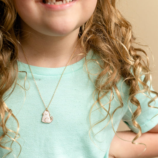 Sitting White Cat Enamel Charm Necklace Children's