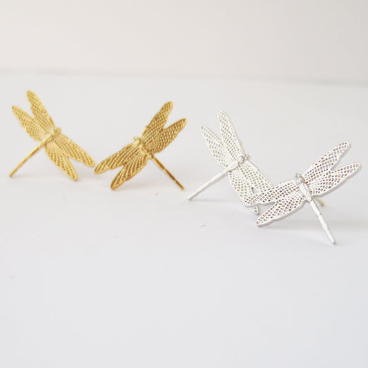 14k Gold or Sterling Silver Dragonfly Post Stud Insect Bug Earring