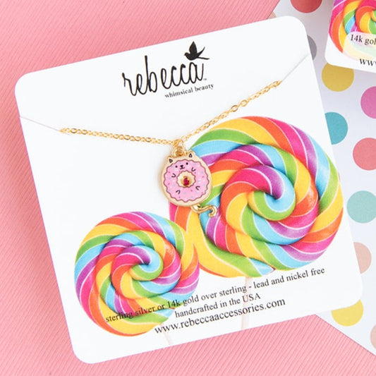 Donut Cat Enamel Charm Necklace Children’s Jewelry