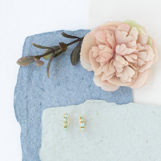 14k Gold Turquoise Stone Huggie Hoop Earring