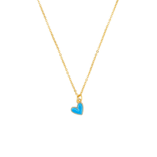 Gold Enamel Blue Drawn Heart Charm Necklace Children's Jewelry Hypoallergenic