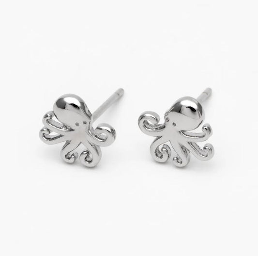 Mini Octopus Stud Earrings – Ocean-Inspired, 14k Gold or Sterling Silver, Hypoallergenic