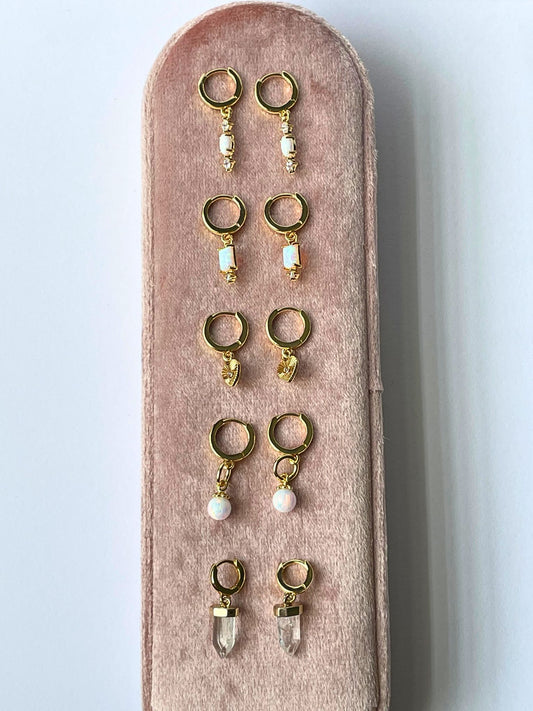 Opalite and CZ Drop Huggie 14k Gold Earring Hypoallergenic