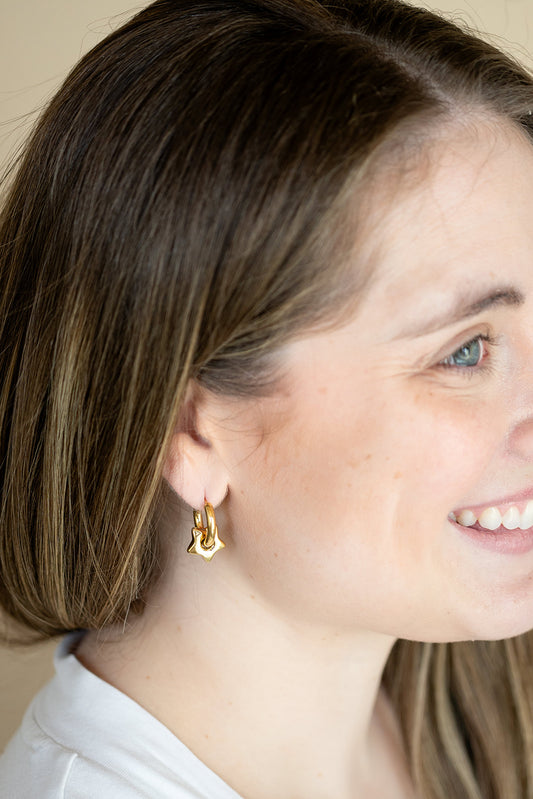 14k Gold Chunky Star Huggie Hoop Earring Bubble Style Geometric