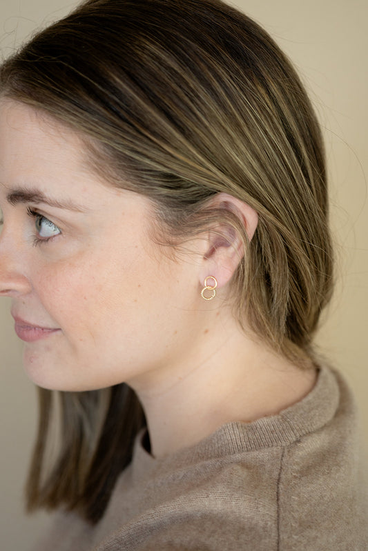 Double Circle Hoop Post Dangle Earring Twisted Hoop