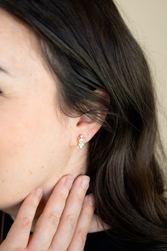 14k Gold Circle Cluster Pave Cubic Zirconia Gemstone Simple Post
