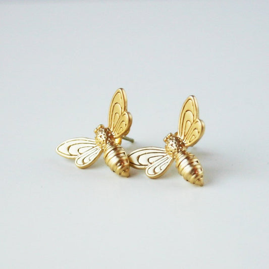 Detailed Bee Post Earrings – Matte Sterling Silver or 14K Gold Over Sterling | Nature-Inspired Studs