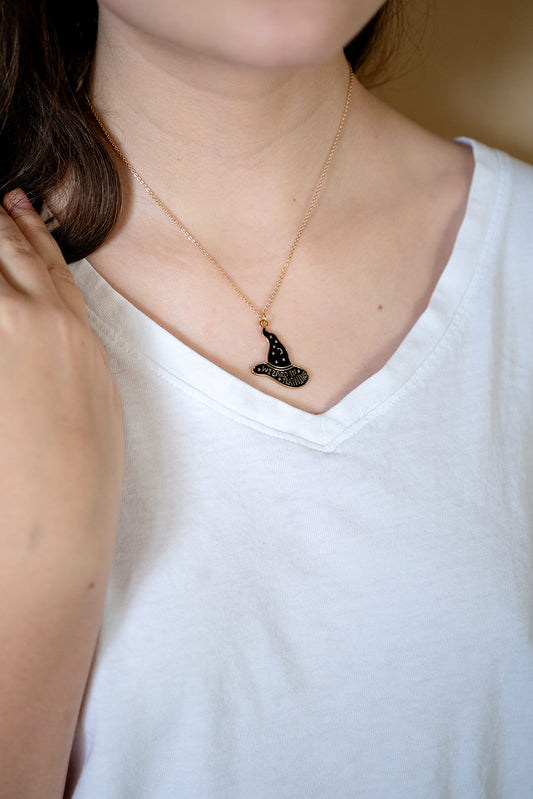 Wizard in Training Black Witch Hat Charm Necklace Children's Jewelry