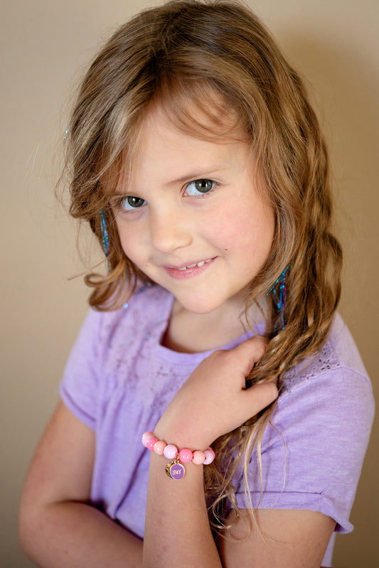 Children’s Beaded Stretch Bracelet with Purple BFF Charm – Designed Specifically for Kids’ Wrists