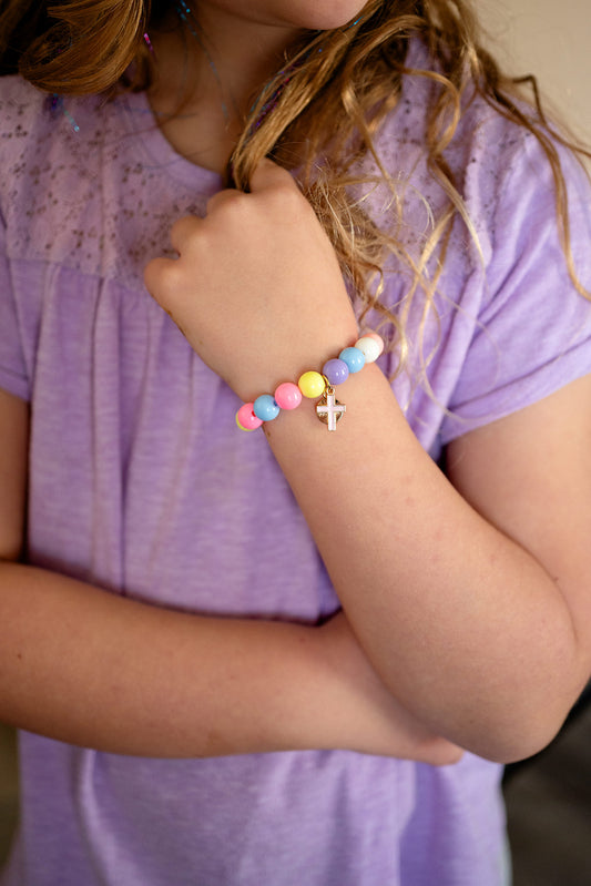 Children’s Pink Cross Beaded Stretch Bracelet – Specifically Designed for Kids’ Wrists