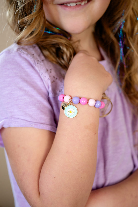Children’s Stretch Beaded Bracelet with White Enamel Daisy Charm