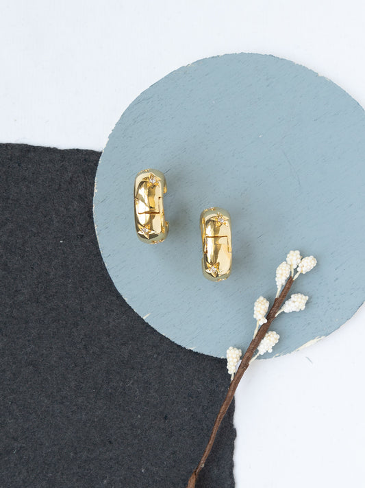 14k Gold Chunky Star Cubic Zirconia Huggie Hoop Earring Celestial Gem