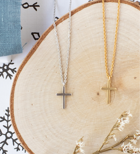 14k Gold or Sterling Silver Simple Dainty Cross Charm Pendant Necklace