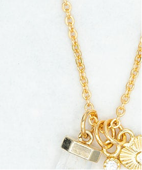 14k Gold Quartz Dagger, CZ Bar Charm, Heart Charm Necklace