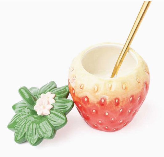 Strawberry Ceramic Jar with Lid – Whimsical Cottage Kitchen Decor