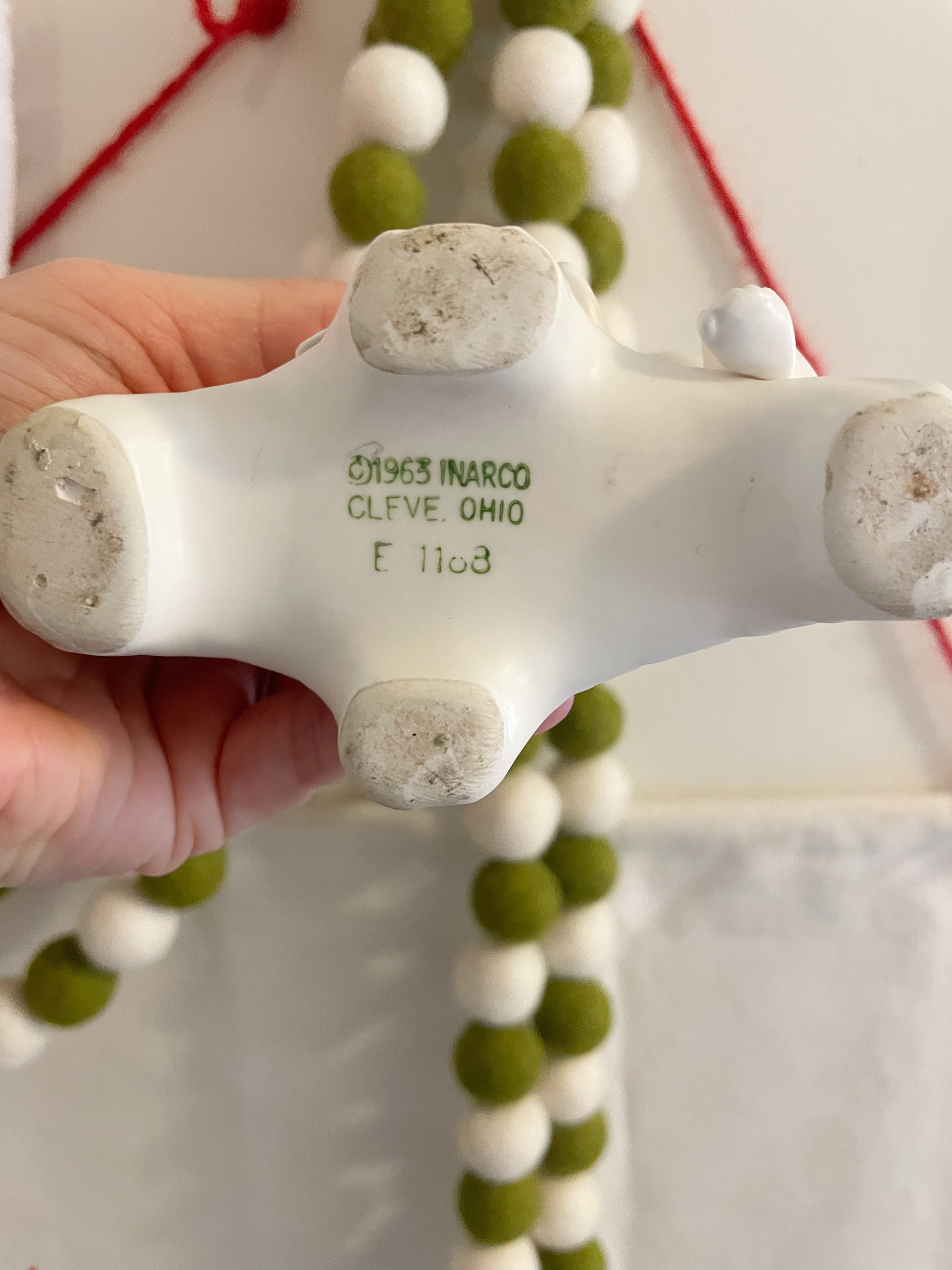 Produced in Japan in 1963 for Inarco (International Art Ware Corporation) of Cleveland, Ohio, this collectible is crafted in creamy glazed ceramic creamware, making it a timeless addition for vintage décor lovers and Inarco collectors alike.