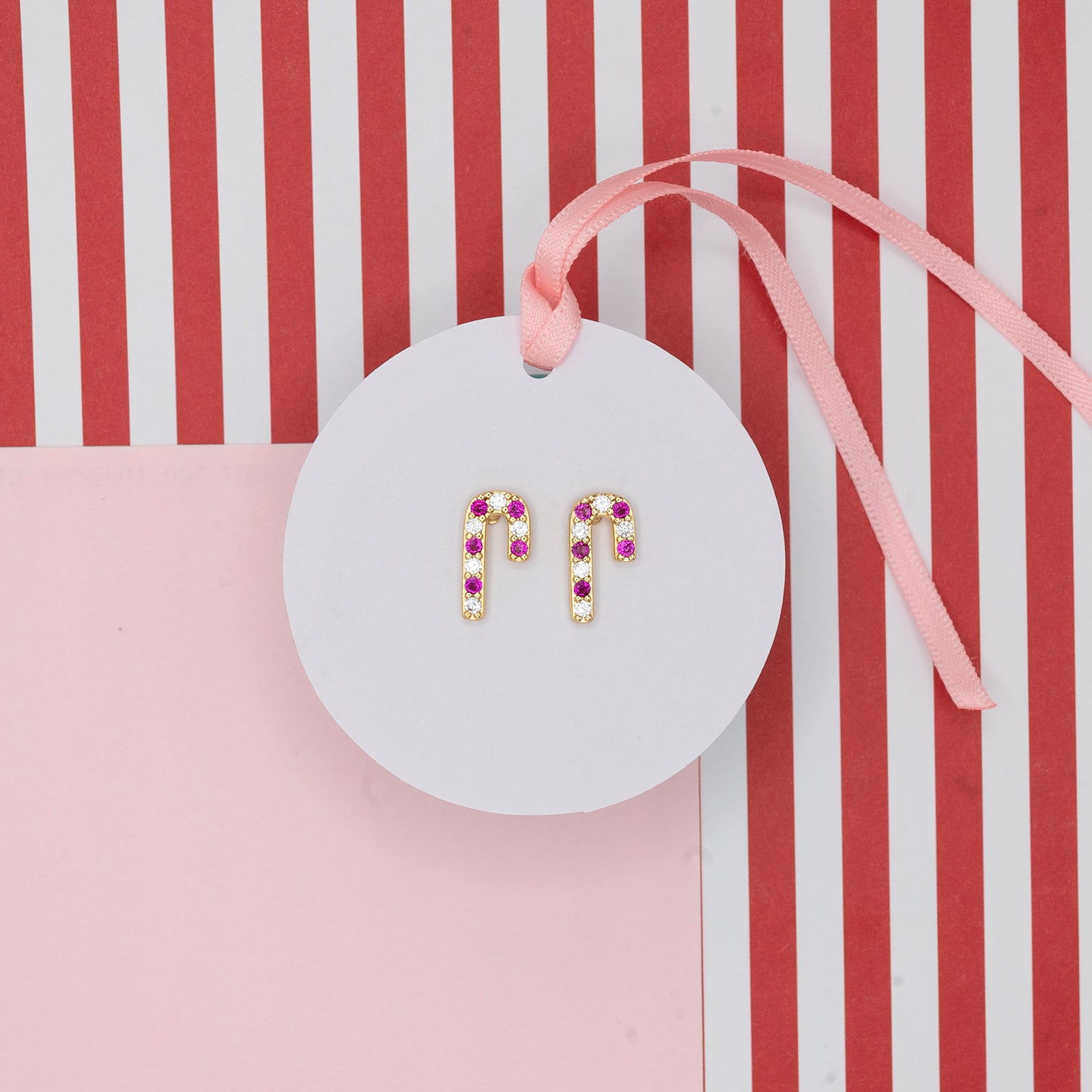 Candy Cane CZ Post Stud Earring Christmas Winter Gift Gold