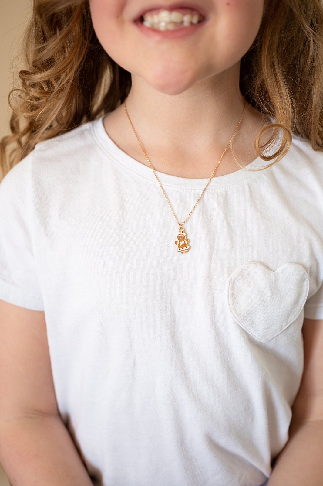Children’s Gingerbread Girl Charm Necklace – 14" Chain with 2" Extender and Lobster Claw Closure