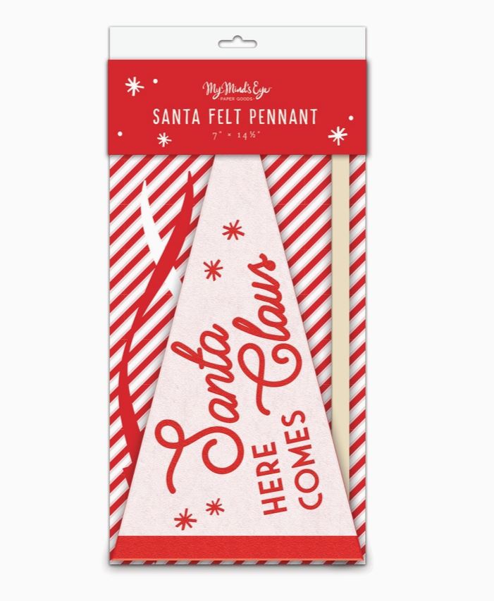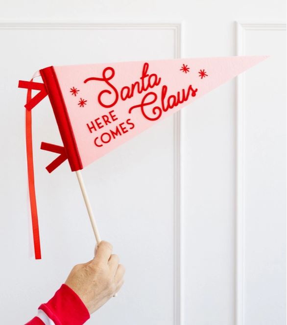 Bring festive cheer to your home with our “Here Comes Santa Claus” felt pennant. Perfect for holiday tablescapes, mantels, or countertop displays, this charming pennant adds a joyful, merry touch to your Christmas décor. Celebrate the season with a simple, elegant decoration that the whole family can enjoy throughout December.